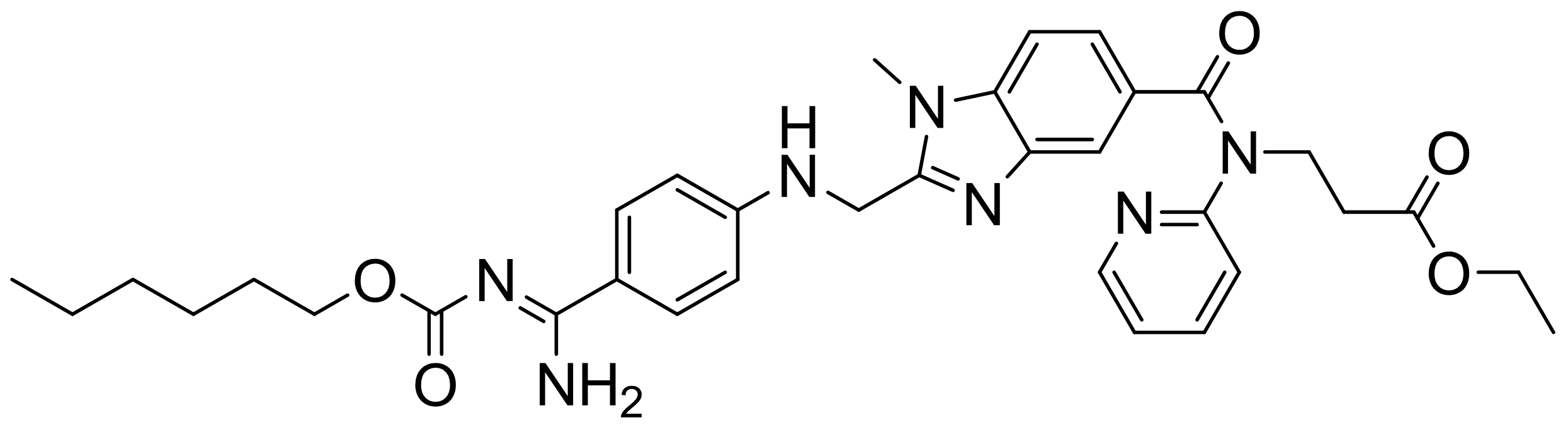 达比加群酯(禁止个人购买,公司购买需提供合法用途证明);N-[2-[4-[N-(己氧基羰基)氨基]苯氨基甲基]-1-甲基-1H-苯并咪唑-5-基羰基]-N-(2-吡啶)-BETA-丙氨酸乙酯;达比加群酯自由碱